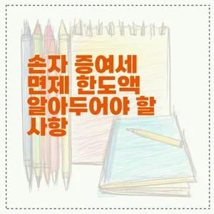 증여세 면제 한도액은 세법상 일정 금액 이하의 증여에 대해 세금이 부과되지 않는 한도를 말합니다. 손자에게 재산을 증여할 때에도 이러한 증여세 면제 한도액이 적용될 수 있습니다.